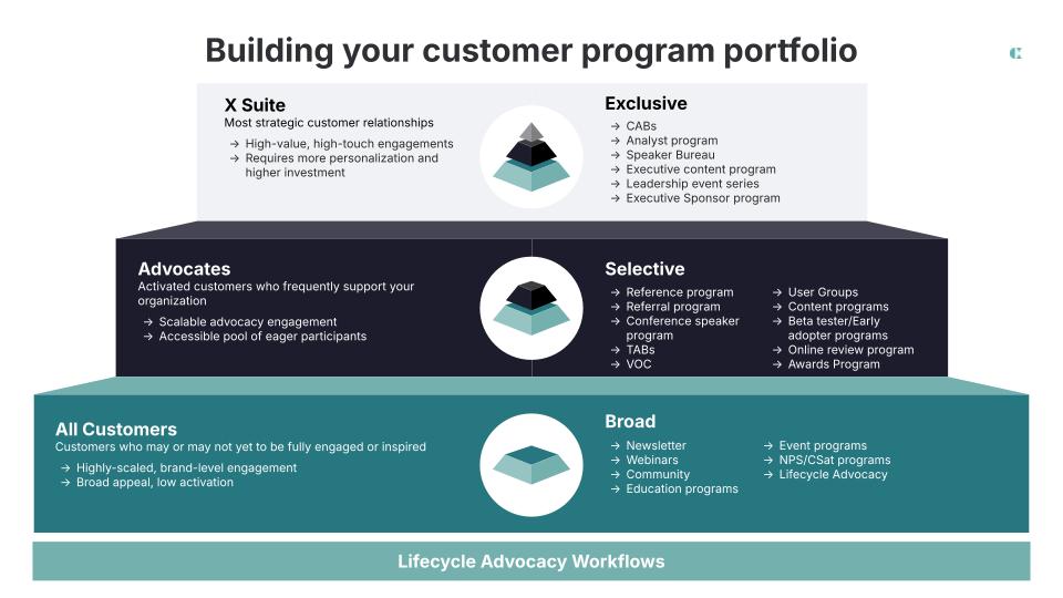 A single advocacy program cannot support every customer type. At least not well, anyway. New customers need something different than long-time champions. Executives need something very different than day-to-day power users. And your pipeline? It needs proof, not swag.