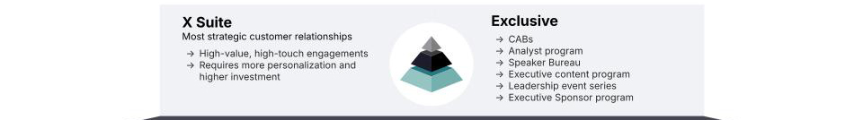 This is your premium layer - the exclusive, white glove experiences reserved for your most strategic customers. These programs require higher personalization and tighter orchestration, but deliver major strategic value.