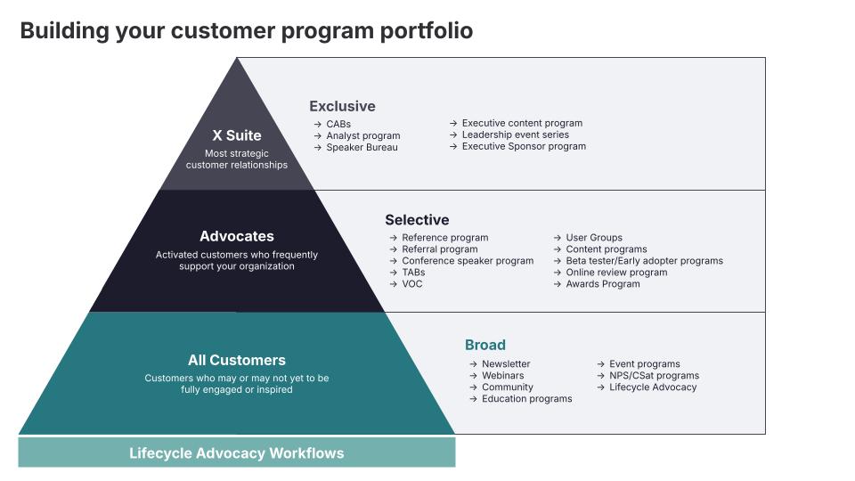 A customer might start in your community, join a user group, then become a reference, and eventually sit on a CAB. A good portfolio makes those transitions seamless.